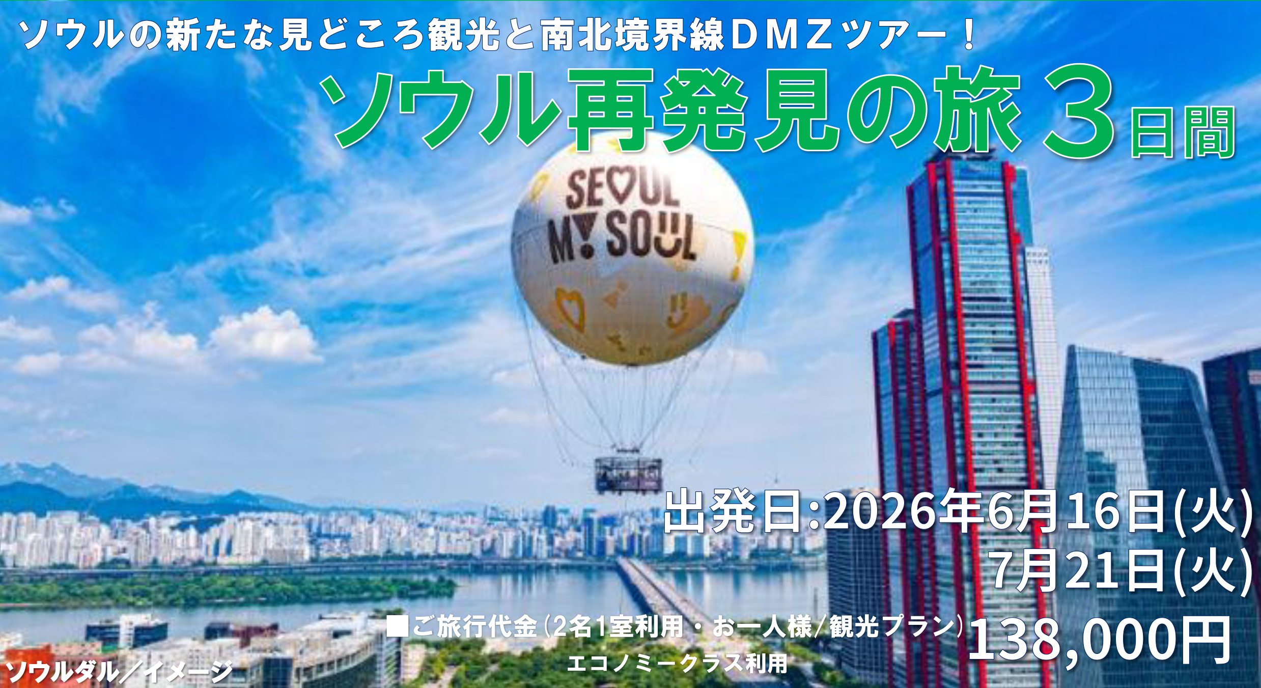 今話題の係留式のヘリウム気球「ソウルダル」(ソウルの月)体験!130m空中から漢江や汝矣島などの絶景を一望できる新感覚のアトラクションです。