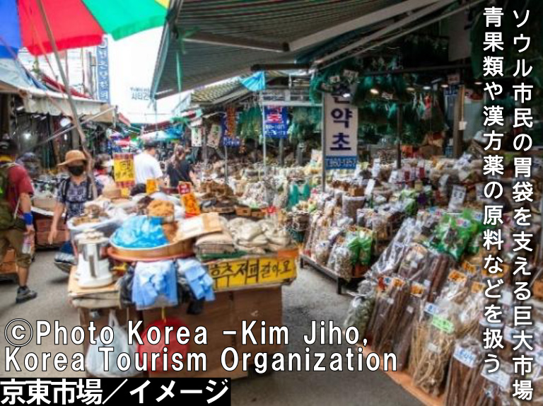 韓国最大の漢方薬市場の薬令市場や青果類・漢方薬の原料などが売られている京東市場散策、ソウルを代表するファッションの街である東大門タウンへ。