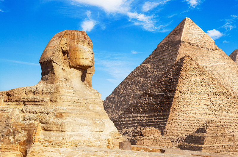 カイロ到着後は、エジプト観光の代表的なスポットであるクフ王のピラミッドなどギザの3大ピラミッドやスフィンクスへ。